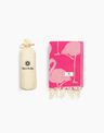 Cette fouta iconique, fabriquée à partir de coton recyclé, se distingue par son motif unique représentant des Flamants roses. À la fois remarquable et confortable, cette fouta est également légère et conçue pour sécher rapidement, ce qui la rend parfaite pour une utilisation à la plage ou à la piscine. Elle procure un confort exceptionnel à chaque utilisation. De plus, elle présente l’originalité d’avoir deux faces de couleurs différentes, permettant de varier les plaisirs selon l’envie du moment.
