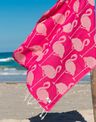 Fouta méditerranéenne moderne, motif unique représentant des Flamants roses, 180 x 100cm, tissage Jacquard, avec pochette de rangement. Idéal pour Plage, Piscine, Spa, Picnic, Intérieur ..